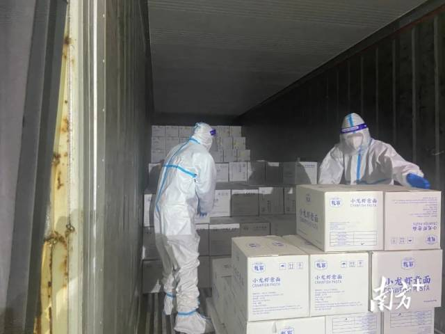 “愛心馳援,香港加油!粵港同心,抗擊疫情!”3月17日上午10點,湛江國聯水產一輛載滿649件預制菜的貨車駛出總部大門,馬不停蹄趕往湛江港集裝箱碼頭,爭取以最短的時間運抵香港。